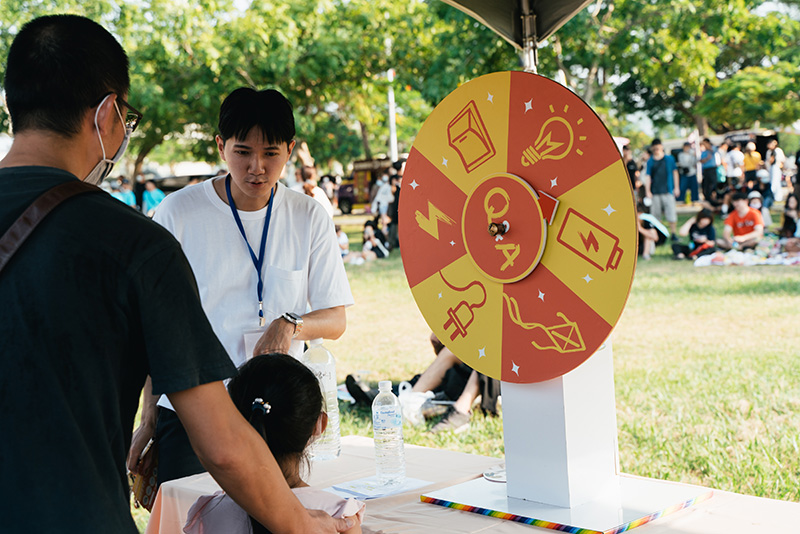 至現場服務台領取闖關卡,體驗節電互動攤位,集滿3個章,並將抽獎聯投入抽獎箱,即可參加最終抽大獎活動。